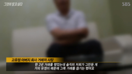 고유정의 아버지 회사와 2년 동안 거래했던 업체 사장은 제작진에게 "고유정 때문에 거래를 끊었던 것이다. 업무 처리가 원활하지 못하고 누락이 발생했던 상황이다. 출퇴근을 마음대로 하다보니 직원들과 갈등도 있었던 것이다"고 전했답니다.