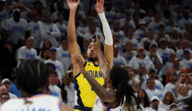 2024-2025 미국 프로농구(NBA) 파이널 1차전이 펼쳐진 미국 오클라호마주 오클로하모시티의 페이컴 센터. 경기 종료 0.3초를 남기고 역전포가 터졌다. 원정 팀 인디애나 페이서스의 '승리 버튼' 타이리스 할리버튼이 또 승부처에서 결정적인 역전포를 작렬했다. 정규시즌 MVP 샤이 길저스-알렉산더가 이끄는 오클라호마시티 선더를 울렸습니다.